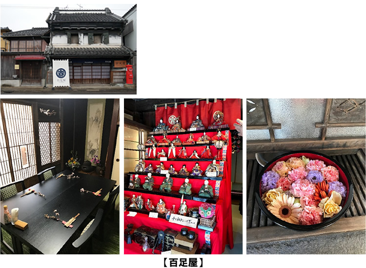 株式会社百足屋は、川越市指定有形文化財である「田口家住宅」(川越市松江町2丁目5-11)の保全を目的とし、伝統的な建物を利活用し、茶道・華道・書道・日本舞踊・三味線・折り紙等の日本文化を体験する場、お抹茶等を提供するカフェ等を運営しております。また入り口部分の「店蔵」では伝統工芸品や土産物を販売しております。