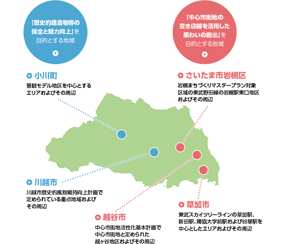 埼玉県内のリノベーション等によるまちづくり事業を支援します。