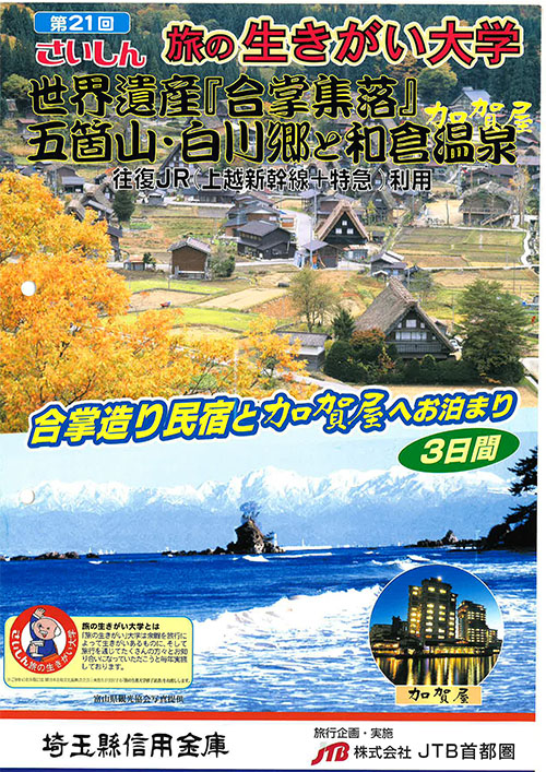 さいしんは昭和62年から、余暇を旅行によって“生きがい”あるものに、そして旅行を通じてたくさんの方々とお知り合いになっていただくことを目的に『旅の生きがい大学』を実施しております。